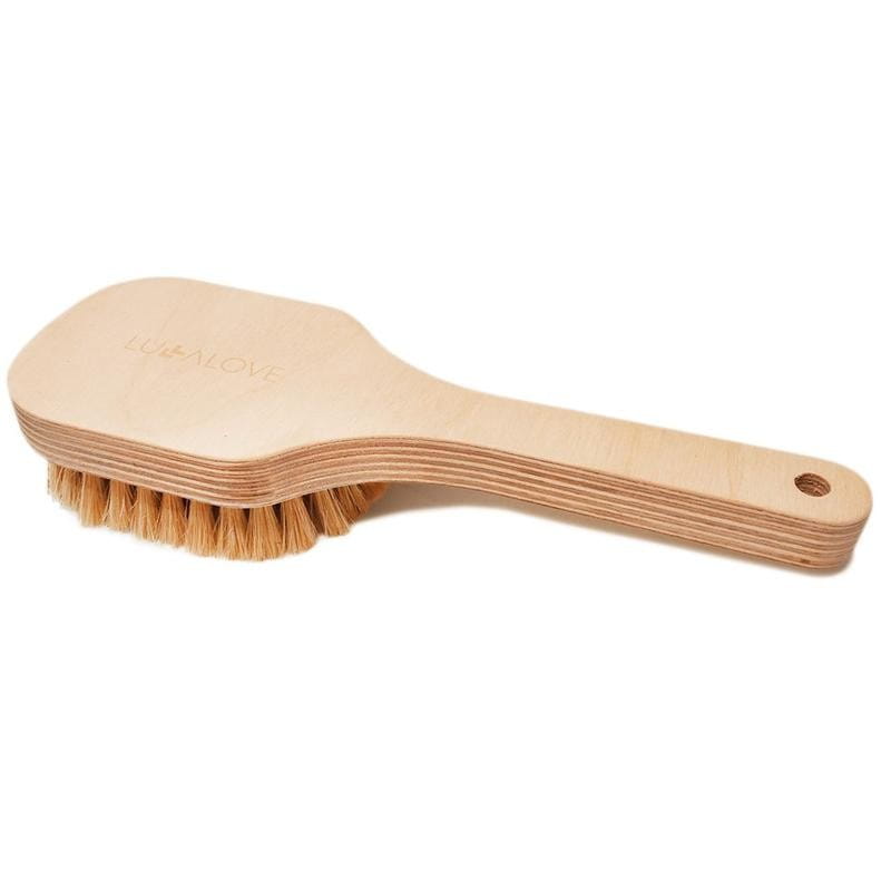 Szczotka do ciała Lullalove o średniej twardości włosia z wygodną rączką. Szczotka przeznaczona do masażu na sucho, ale także zalecana do szczotkowania na mokro, podczas kąpieli. Wygodna rączka ułatwi samodzielne masowanie pleców.