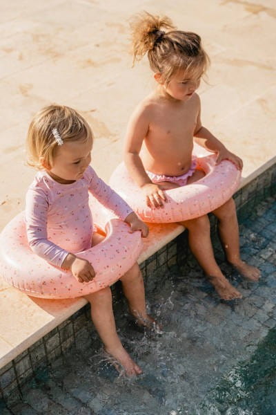 Koło do pływania dla dzieci Little Dutch z kolekcji Pink Flowers w kwiatki. Różowe Koło o średnicy 50 cm jest przeznaczone dla dzieci od 3-go roku życia. Dzięki niemu dziecko może czuć się bezpiecznie podczas zabaw w basenie, nad jeziorem lub nad morzem. Idealny do nauki pływania oraz do wakacyjnego relaksu.