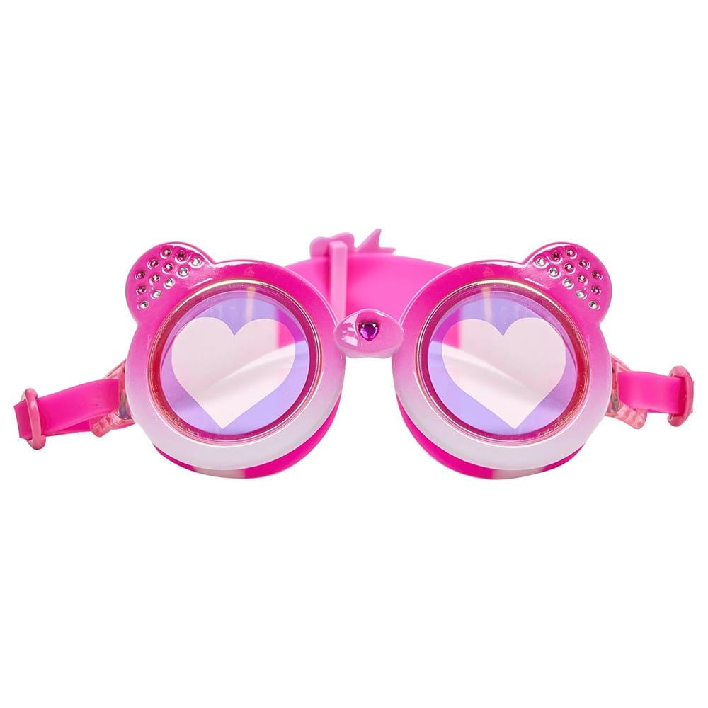 Dziecięce okularki do pływania Bling2o z oprawkami w kształcie misia panda, efektownymi kryształkami i serduszkami na szkiełkach.
