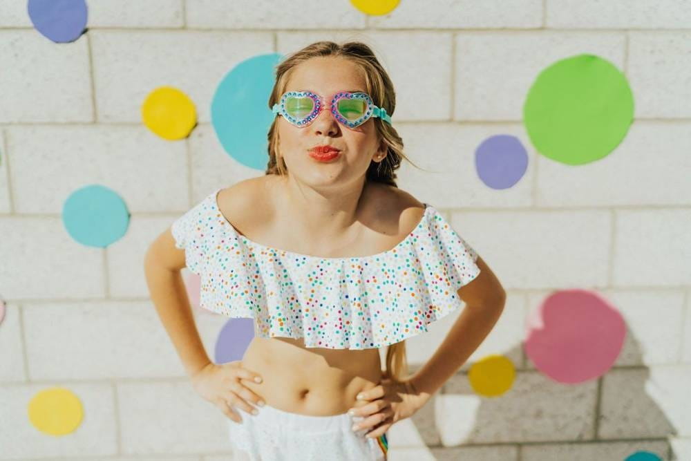 Okularki do pływania w kształcie serduszek Bling20 z kryształkami na oprawkach i wygodnym zapięciem.