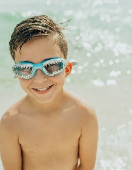 Amerykańskie okularki pływackie dla dzieci są bardzo szczelne, mają przeciwmgielne szkła, ochroną przed promieniowaniem UV, lustrzane szybki, plastikowe pudełko ochronne i silikonowy, wygodny nosek.
