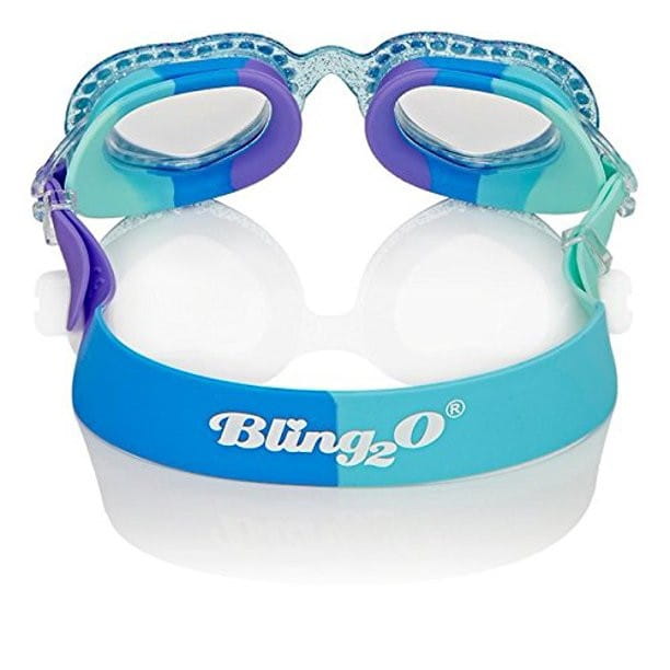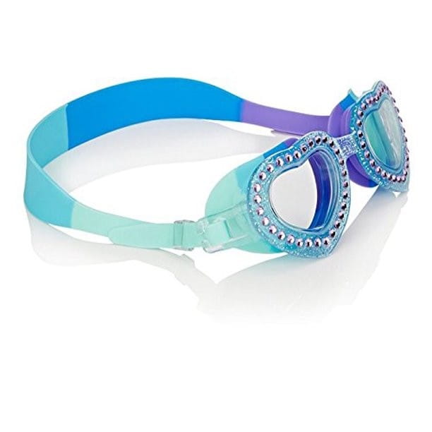 Ekskluzywne okulary pływackie dla dzieci w kształcie serca od Bling2o mają brokatową ramkę wokół oka i mnóstwo kolorowych dżetów. Silikonowy pasek w koło głowy jest regulowany, wykonany z przyjemnego silikonu.