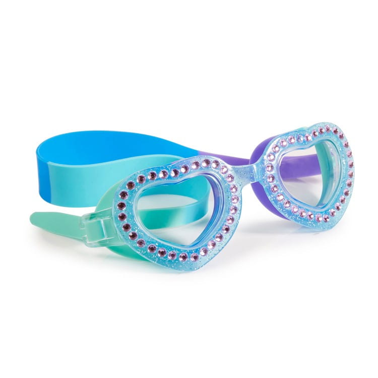 Okularki do pływania z oprawkami w kształcie serduszek Bling20 oraz brokatem i kryształkami na oprawkach.