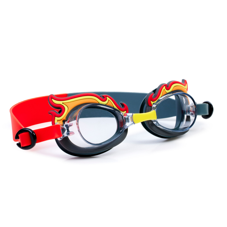 Dziecięce okularki do pływania marki Bling2o seria Aqua2ude stylizowane na płomienie. Okulary pływackie dla dzieci sprawdzą się idealne na basenie, nad morzem, czy w kąpieli w wannie.
