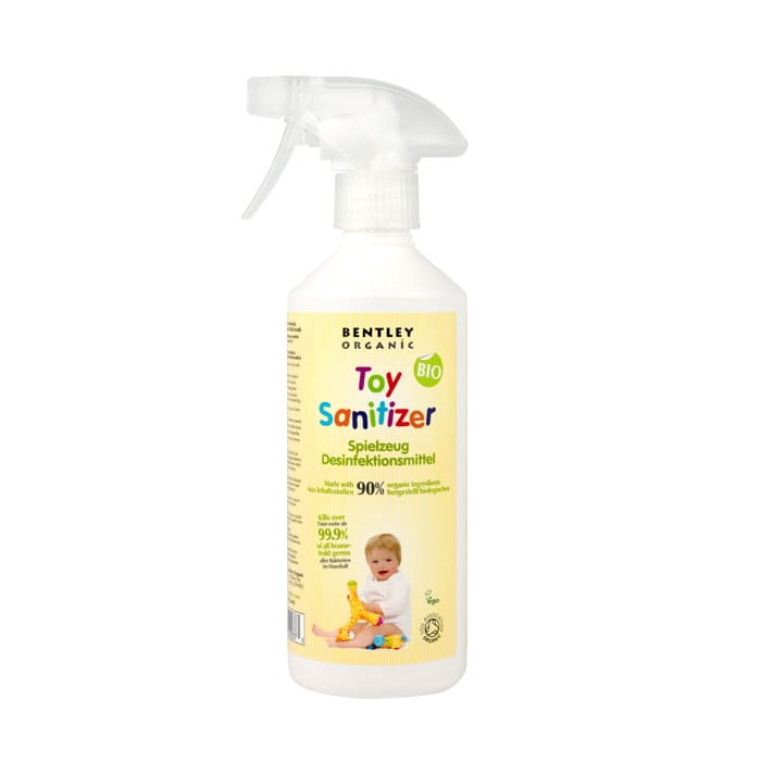 Spray do dezynfekcji zabawek oraz otoczenia dziecka Toy Sanitizer Bentley Organic. Zabija 99,9% szkodliwych bakterii, a przy tym pozostaje bezpieczny dla dzieci, zwierząt domowych i środowiska. Preparat dezynfekujący przyda się do umycia nocnika, krzesełka do karmienia, śliniaczków, podkładek, koszy na śmieci, zabawek, których nie można prać, a także w kuchni np. do powierzchni mających kontakt z surowym mięsem.