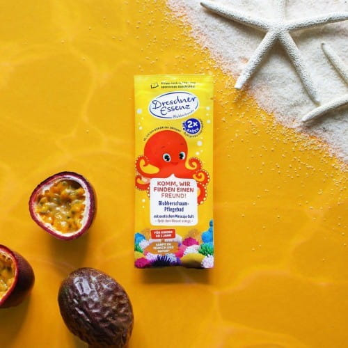 Pachnąca kąpiel w pomarańczowej wodzie z lekką pianką. Pieniąca się sól do kąpieli dla dzieci Bubble Gang Dresdner Essenz o egzotycznym zapachu marakui. Sól do kąpieli z odżywczym olejkiem migdałowym jest specjalnie dostosowana do delikatnej skóry dzieci.