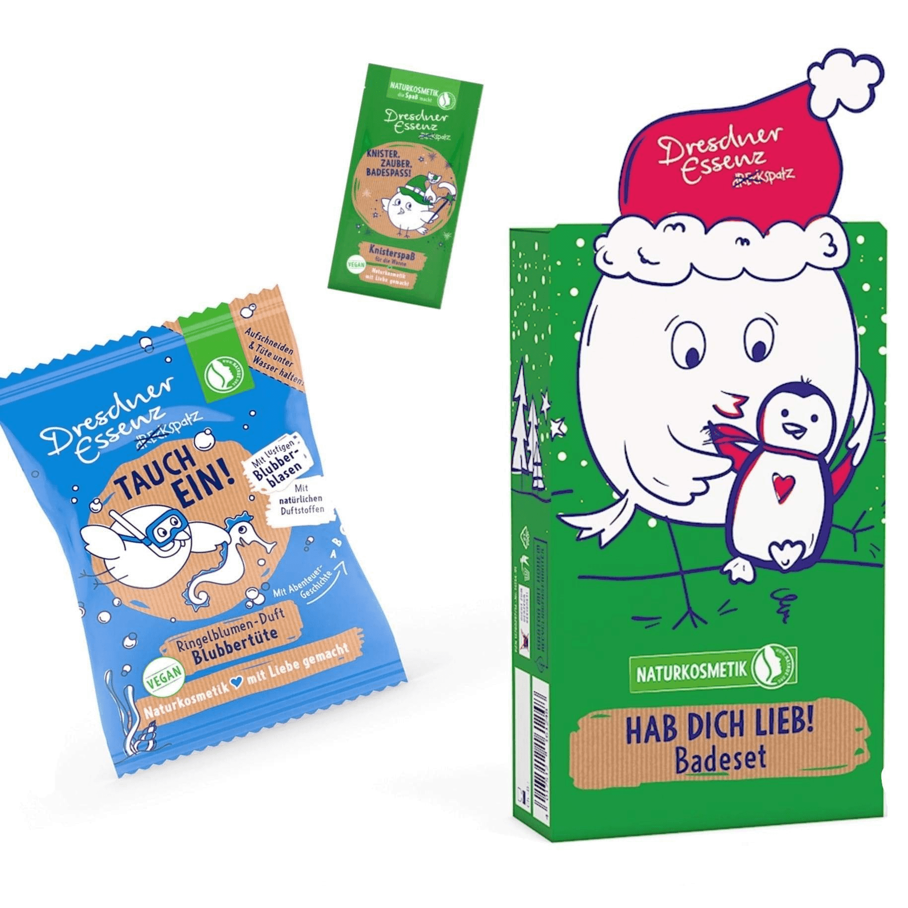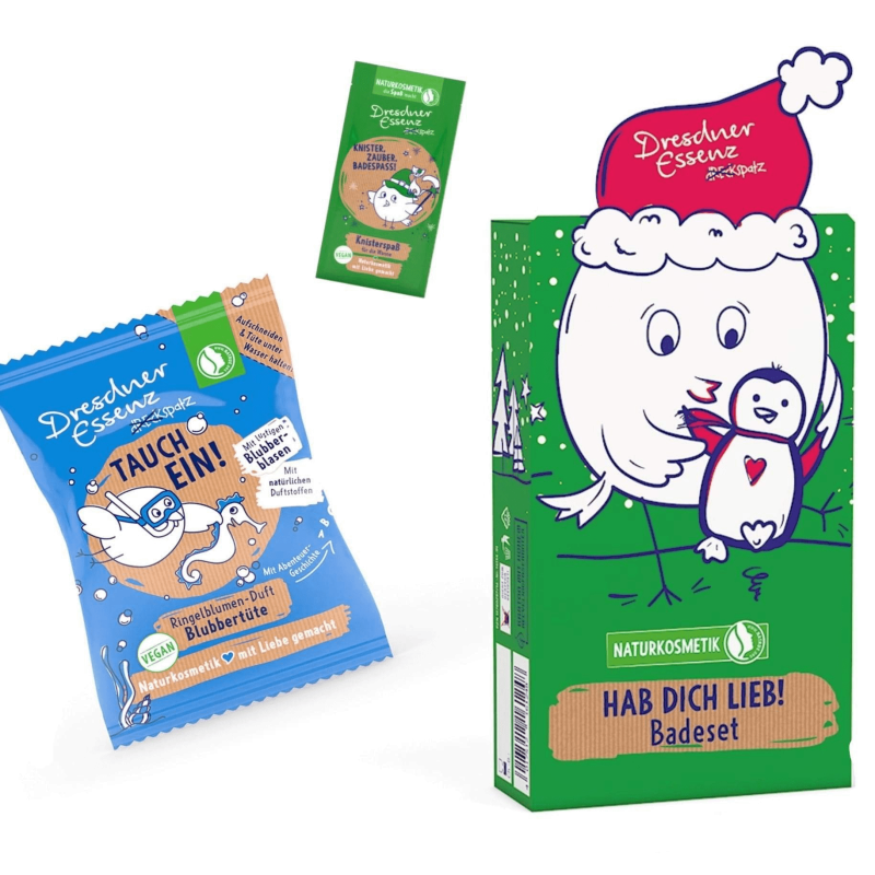 Mini zestaw 2 kosmetyków do kąpieli Dresdner Essenz, które po wrzuceniu do wanny zmieniają kolor wody, strzelają lub musują i obłędnie pachną. W pudełku prezentowym mieszczą się 2 rodzaje naturalnych kosmetyków: