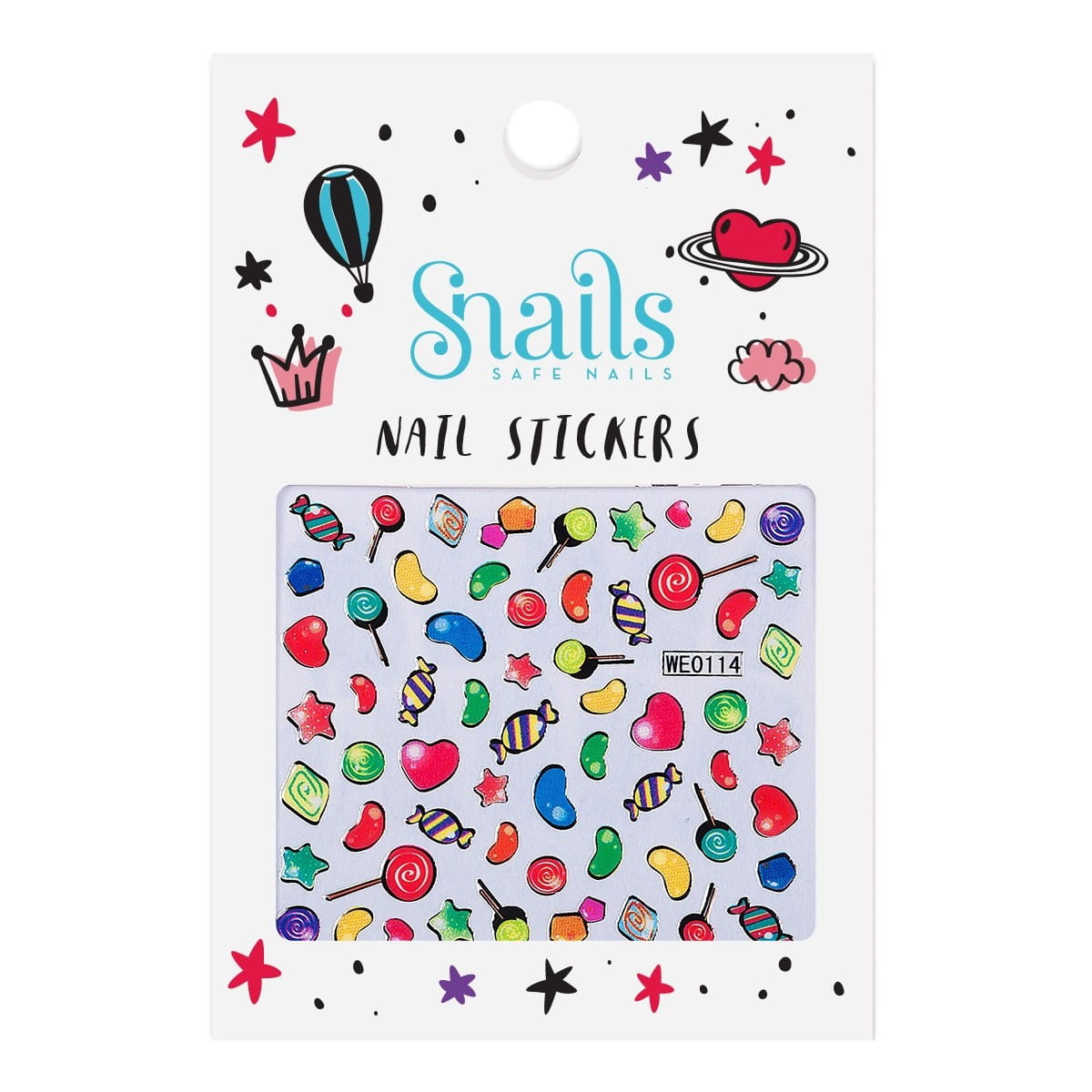 Kolorowe, dziecięce naklejki na paznokcie Snails udekorują paluszki dziewczynki. Mogą być przyklejane na lakier lub bezpośrednio na płytkę paznokcia. Wesołe naklejki na paznokcie są całkowicie bezpieczne, nietoksyczne, łatwe do przyklejenia i usunięcia.