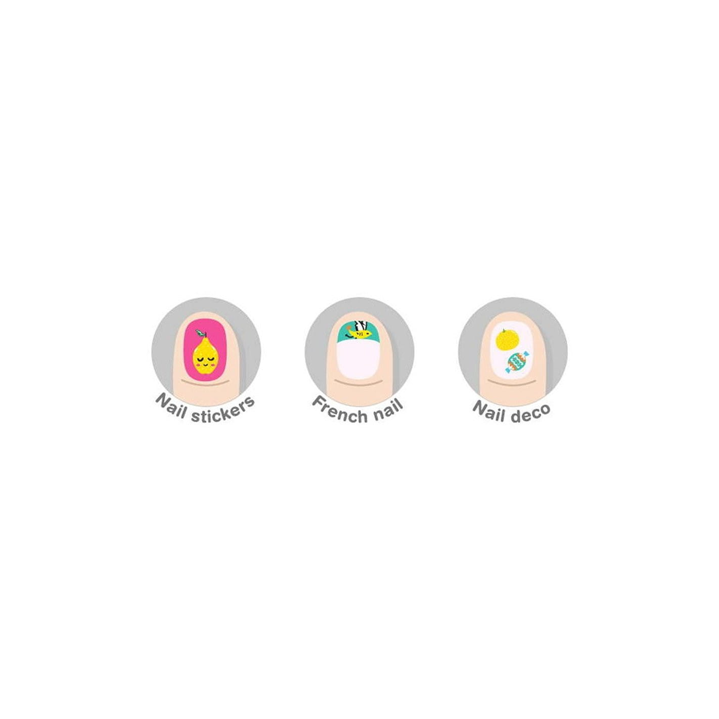 Brokatowe naklejki na paznokcie Avenir udekorują paluszki dziewczynki. Spośród 78 naklejek można wybrać wzory na całą płytkę lub też mniejsze aplikacje. Mogą być przyklejane na lakier lub bezpośrednio na płytkę paznokcia. Wesołe naklejki na paznokcie są całkowicie bezpieczne, nietoksyczne, łatwe do przyklejenia i usunięcia. Naklejki utrzymują się około 3-5 dni.
