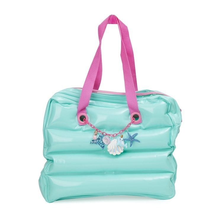 Dmuchana torba plażowa dla dzieci Bling2o wygląda oszałamiająco i zdobią ją wakacyjne charmsy. Torba na ramię jest nadmuchiwana pompką, zapinana na zamek, ma poręczne uchwyty do noszenia. Wnętrze pomieści akcesoria do pływania, okularki, napój, ulubione zabawki. Torba jest wodoodporna, miękka i lekka, łatwo się ją czyści.