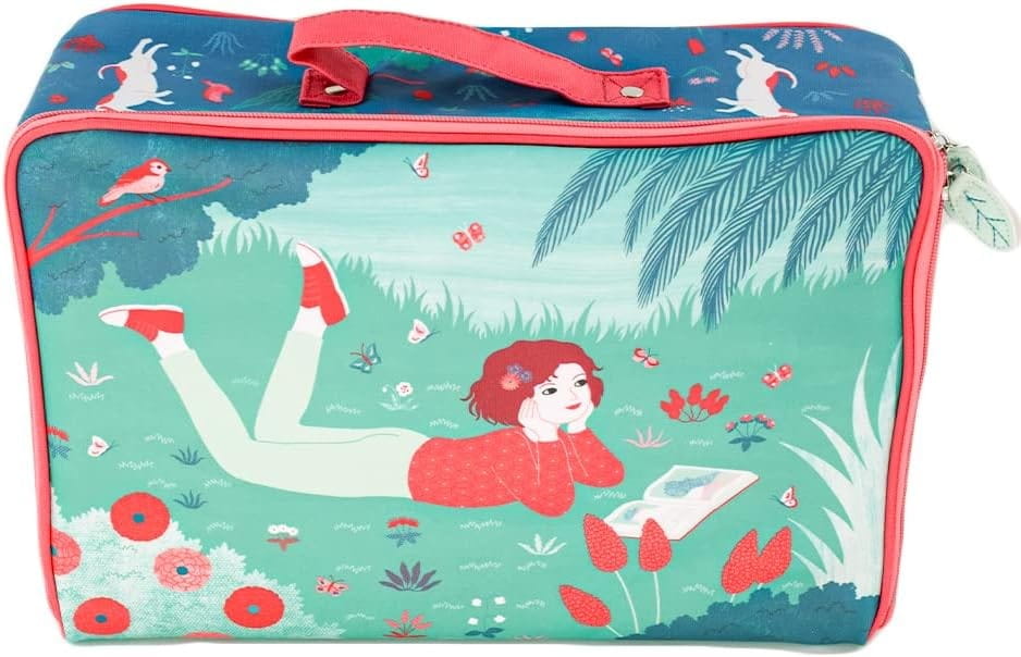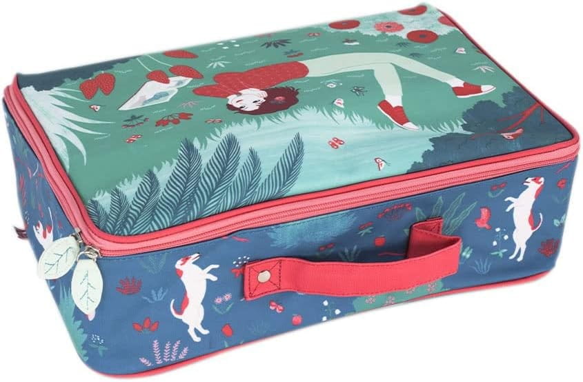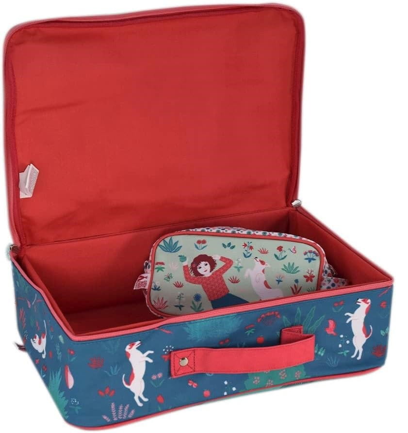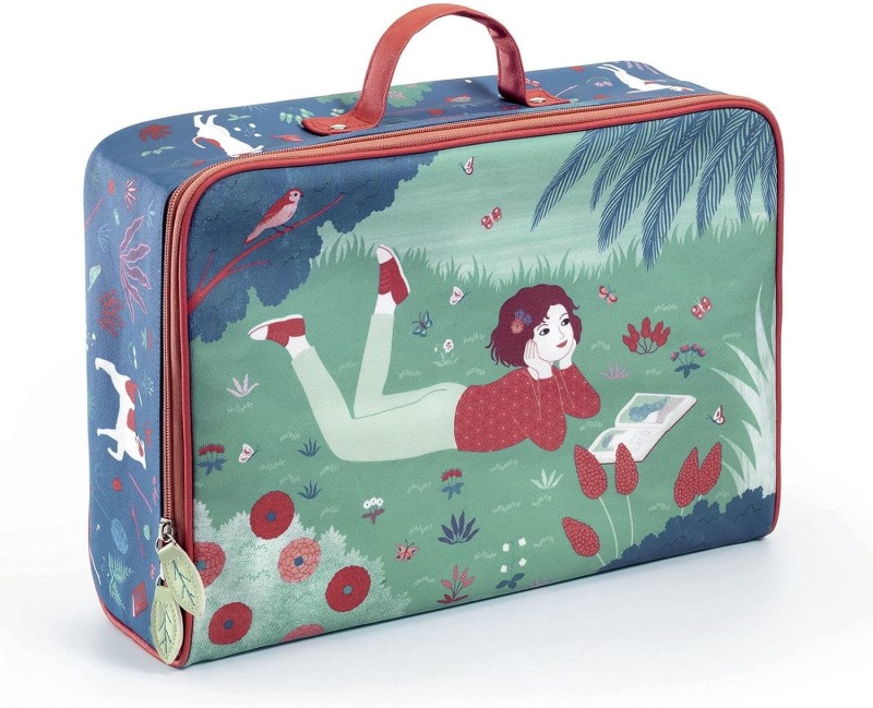 Walizka dla dzieci Djeco do zabrania ulubionych rzeczy na wakacje lub weekend. Stanowi także piękną dekorację dziecięcego pokoiku i przyda się do przechowywania zabawek, czy nawet stworzenia domku dla lalek. Walizka ma płócienną powłokę przeciwdeszczową. Wnętrze walizki składa się z dużej komory, zapięcie na suwak dwukierunkowy.