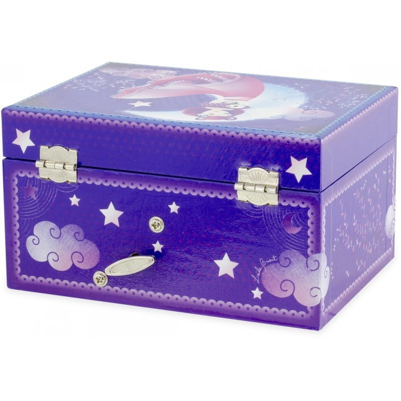 Urocza fioletowa szkatułka z pozytywką francuskiego producenta Ulysse zachwyca niezwykłym designem, kolorami i starannym wykonaniem. Pudełko na biżuterię na wieczku którego znajduje się obrazek dziewczynki tulącej misia pandę. Po otworzeniu wieczka szkatułki i wcześniejszym nakręceniu mechanizmu pozytywki wewnątrz mała balerina zaczyna tańczyć w takt muzyki. Dopracowane szczegóły i przepiękne kolory sprawią że szkatułka to nie tylko relaksacyjna muzyka dla maluszka ale też elegancka dekoracja dziecięcego pokoiku. Aby nakręcić mechanizm muzyczny, należy przekręcić mechanizm znajdujący z tyłu szkatułki. Pozytywka gra uspokajającą melodię Listen to the Mocking Bird (Richard Milburn).