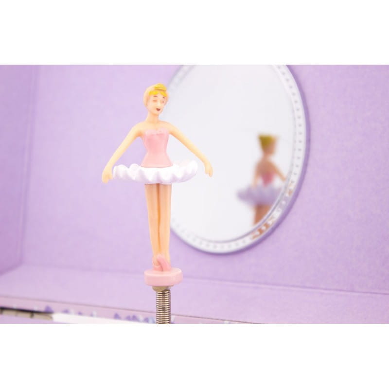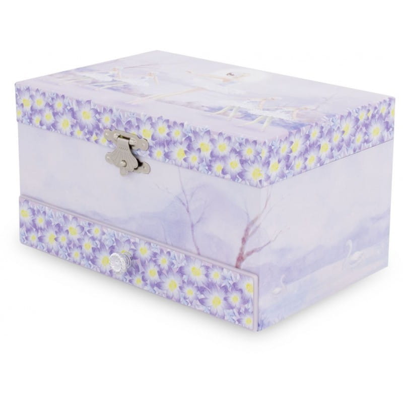Lawendowy pojemnik szkatułka na biżuterię z pozytywką francuskiego producenta Ulysse zachwyca niezwykłym designem, kolorami i starannym wykonaniem. Prostokątna szkatułka pudełko z szufladką na wieczku której znajduje się obrazek baletnicy tańczącej do jeziora łabędziego. Po otworzeniu wieczka szkatułki i wcześniejszym nakręceniu mechanizmu pozytywki wewnątrz mała baletnica zaczyna tańczyć w takt muzyki. Dopracowane szczegóły i przepiękne kolory sprawią że szkatułka to nie tylko relaksacyjna muzyka dla maluszka ale też elegancka dekoracja dziecięcego pokoiku. Aby nakręcić mechanizm muzyczny, należy przekręcić mechanizm znajdujący z tyłu szkatułki. Pozytywka gra uspokajającą melodię Rigoletto (Verdi).