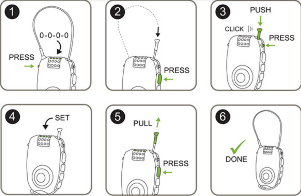 Zapięcie antykradzieżowe pozwala przypiąć wózek, rower, hulajnogę i zabezpieczyć je przed kradzieżą. Blokada to stalowa, wysuwna linka oraz czterocyfrowy zamek, co zapewnia solidne zabezpieczenia, które jest za razem łatwe i wygodne w użyciu.