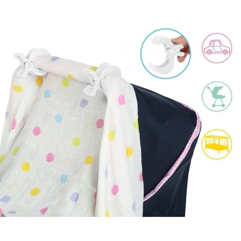 Klipsy do przypinania Kiokids idealne w podróży i na spacerze. Klamry do wózka dziecięcego przytrzymają pieluszkę stanowiąc ochronę przeciwsłoneczną lub przeciwwietrzną. Klamerki przytrzymają także moskitierę, ubranka które muszą wyschnąć, czy czapeczkę by była w pobliżu. Klipsy maja uniwersalny rozmiar, posłużą także do fotelika samochodowego, łóżeczka, czy samochodu. Dzięki klipsom łatwo i szybko przypomnimy oraz odczepimy pieluszkę osłaniającą dziecko. Są dużo wygodniejsze niż parasolka przeciwsłoneczna.