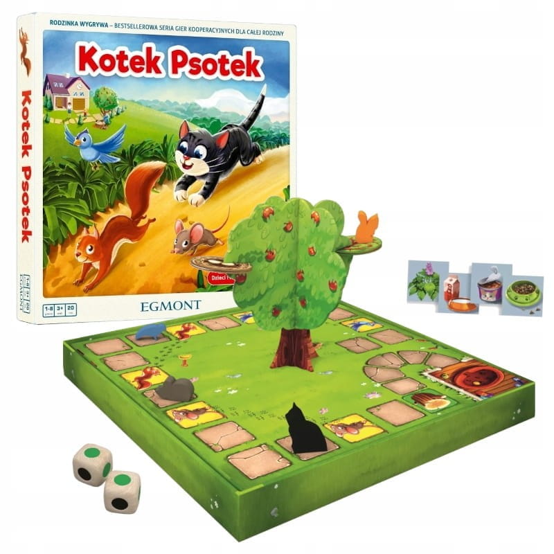 "Kotek Psotek uwielbia ścigać się ze zwierzątkami w ogrodzie. Jest bardzo szybki, ale przyjaciele potrafią go przechytrzyć. Pomóżcie ptaszkowi, wiewiórce i myszce dotrzeć do kryjówki na drzewie. Celem gry jest doprowadzenie zwierzątek do kryjówki, zanim kotek je dogoni. Kotek jest bardzo szybki, dlatego gracze będą musieli go przechytrzyć, wykorzystując skróty na planszy oraz kocie przysmaki.