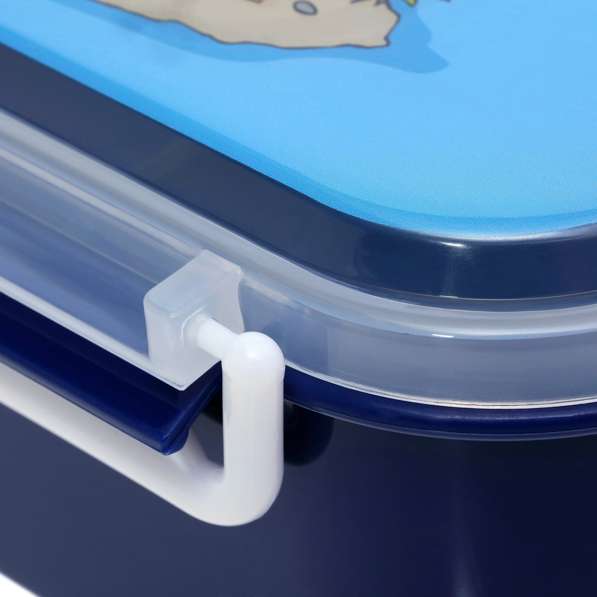 Dziecięcy Lunchbox to pojemnik do przechowywania jedzenia, przekąsek, kanapek dla dzieci do szkoły, na wycieczki, w podróży. Śniadaniówka jest zamykana na klips, szczelna i solidna, w sam raz do zabierania jedzenia na wynos. Wnętrze mieści 2 komory, mniejsza komora jest wyciągana i umożliwia spakowanie wielu różnorodnych pokarmów, owoców, warzyw, ciasta. Granatowy pojemnik posiada przezroczystą pokrywkę z piratem i przyda się także do przechowywania jedzenia w lodówce.