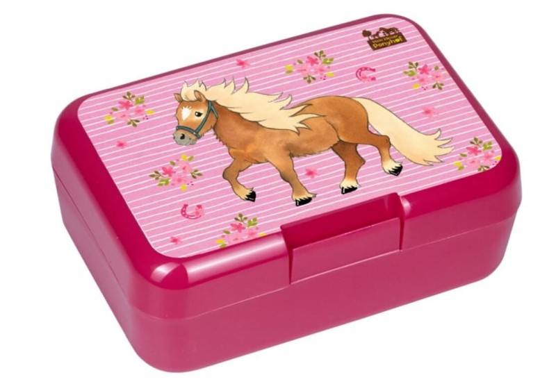 Lunchbox z konikiem pony marki Die Spiegelburg to pojemnik do przechowywania jedzenia, przekąsek, kanapek do szkoły, na wycieczki, w podróży. Śniadaniówka jest zamykana na klips, szczelna i solidna, w sam raz do zabierania jedzenia na wynos.