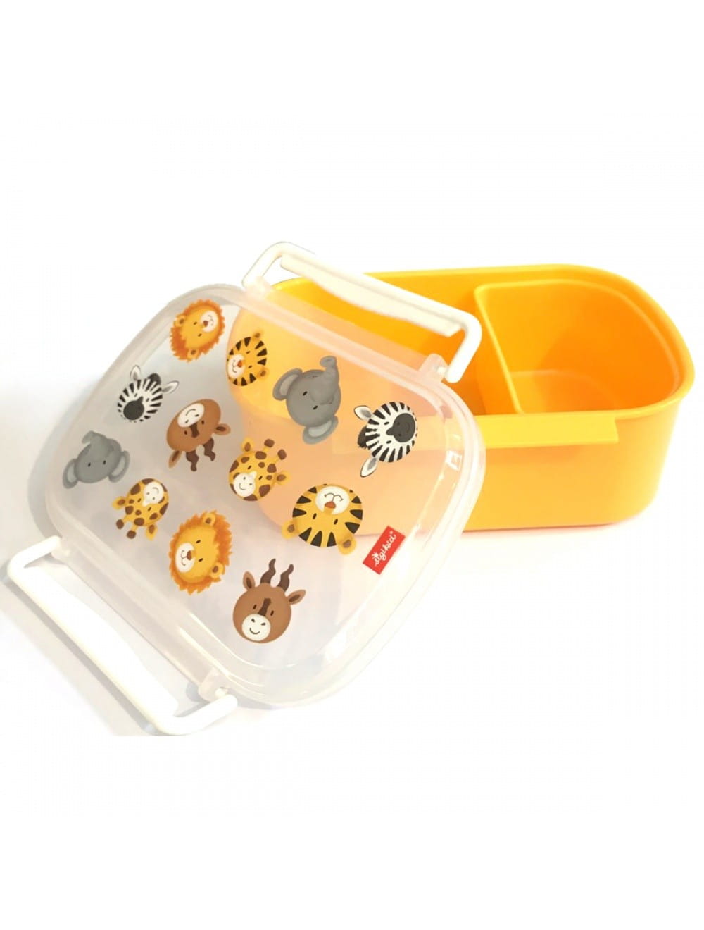 Pojemniki na jedzenie z przegródką, żółta śniadaniówka sigikid Lunch Zoo zamykana na zatrzaski. Rozmiar idealnie pasuje do dziecięcego plecaka.