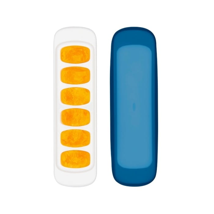 Tacka do zamrażania żywności, łatwego i praktycznego przechowywania jedzenia, zamrażania i podgrzewania. 6 przegródek z pokrywką umożliwi wygodne porcjowanie i podanie wartościowego jedzenia dzieciom. Szczelna silikonowa pokrywa chroni jedzenie przed pochłanianiem lodówkowych zapachów, pozwalając na dłużej zachować świeżość dań. Specjalna płaska konstrukcja pokrywy sprawia, że z łatwością ułożysz tackę na tacce, dzięki czemu nie zajmą one w zamrażarce o wiele miejsca.
