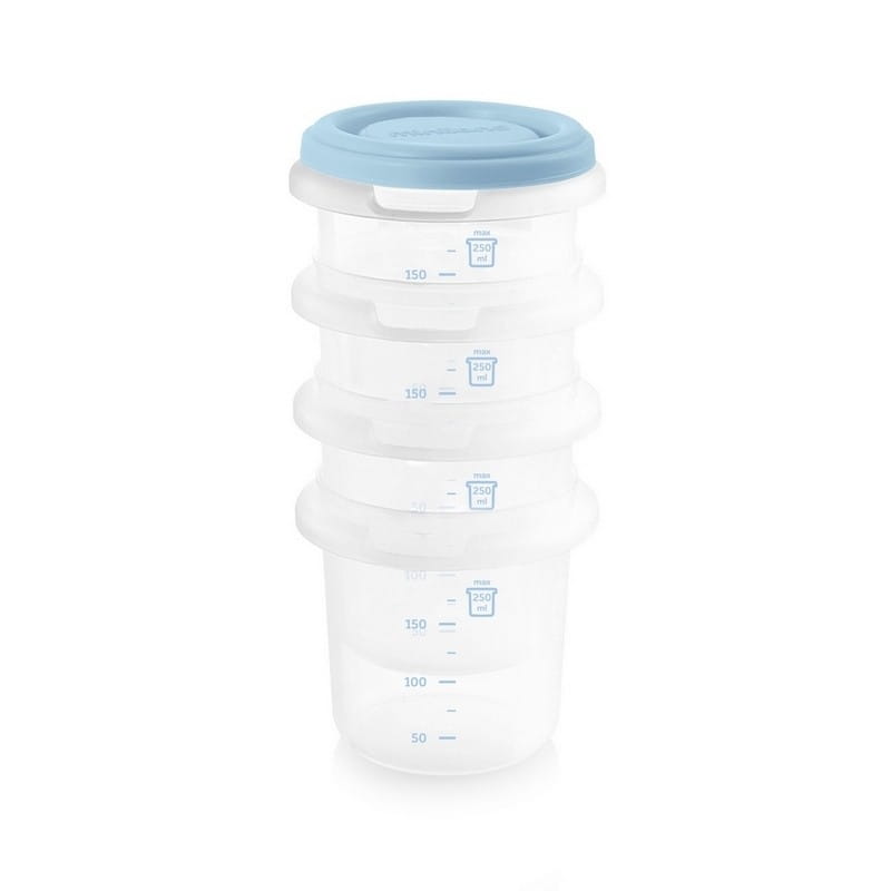 Zestaw zawiera 4 wysokiej jakości pojemniczki próżniowe ze szczelnym wieczkiem, które przydadzą się do przechowywania jedzenia w lodówce i podróży. Obiadek dla dzieci, owoce, kaszka, jogurt, zupka zdrowo i bezpiecznie przechowamy na później, a hermetyczna pokrywka utrzyma świeżość. Pojemniki przydadzą się także do przechowywania mleka mamy lub mlek modyfikowanego. Można układać jeden na drugim dla zachowania większej ilości miejsca.