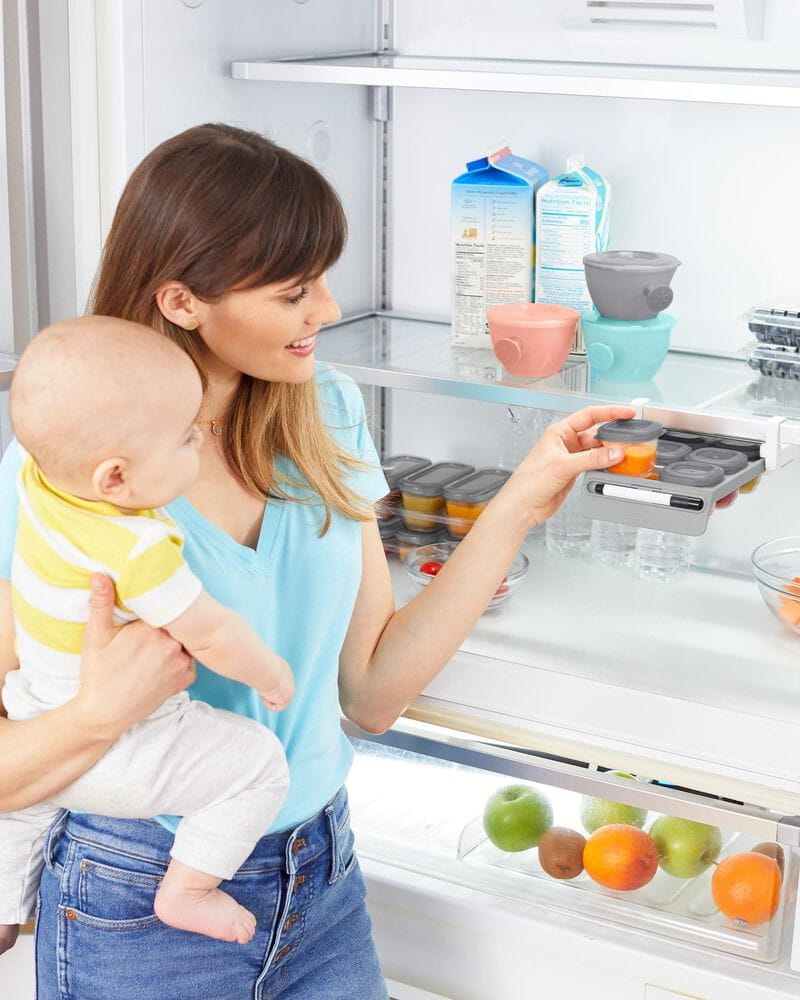 Pojemniczki Skip Hop do przechowywania jedzenia, zamrażania i podgrzewania. Zestaw 6 pojemników z pokrywką umożliwi wygodne porcjowanie i podanie świeżego jedzenia dzieciom. Pudełeczka umieszczone są na wygodnej tacy. Pojemniki można wykorzystać do zabrania jedzenia na wynos, pokrojonych owoców, zupy, jogurtu, bakalii, czy warzyw, a starszakom przygotować i zamrozić lody.