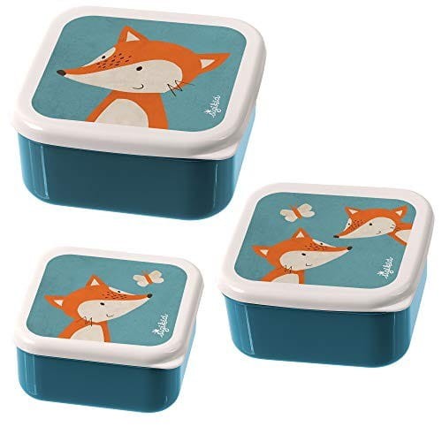 Pojemniki do przechowywania jedzenia przekąsek, kanapek to komplet 3 kolorowych pudełek z motywem liska. Śniadaniówki mają 3 wielkości, są wkładane jedna w drugą zatem zajmują mało miejsca podczas przechowywania.