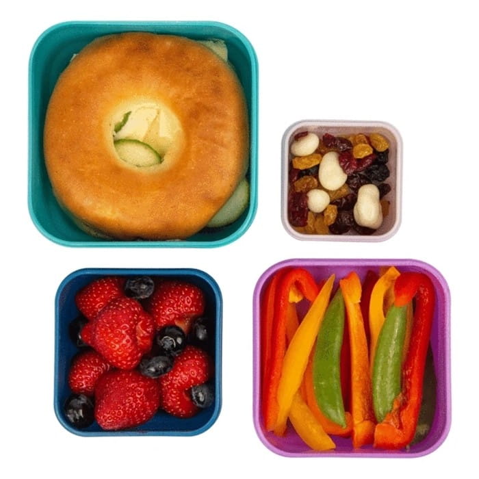 Pojemniki do przechowywania jedzenia: przekąsek, kanapek to komplet 4 kompaktowych pudełek z pieskami. Śniadaniówki mają 4 wielkości, są wkładane jedna w drugą zatem zajmują mało miejsca podczas przechowywania.