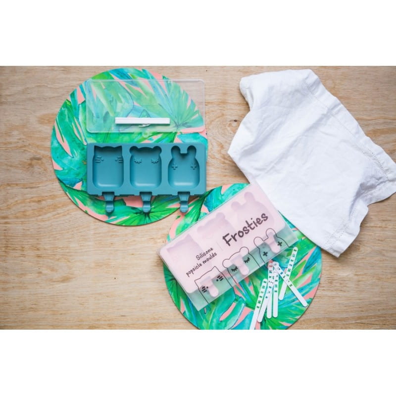 Silikonowa forma ICE POP MOLD mieści 3 przyjaciół: ślicznego kota, zrzędliwego misia i podskakującego króliczka, a także 6 patyczków wielokrotnego użytku.
