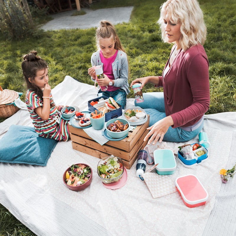 Pojemnik na jedzenie z wyjmowanymi przegródkami jest zamykany na klips. Bardzo łatwy w obsłudze do otwierania i zamykania po posiłku. Rozmiar idealnie pasuje do torebki lub dziecięcego plecaka, do szkoły, przedszkola, na spacer, czy piknik.