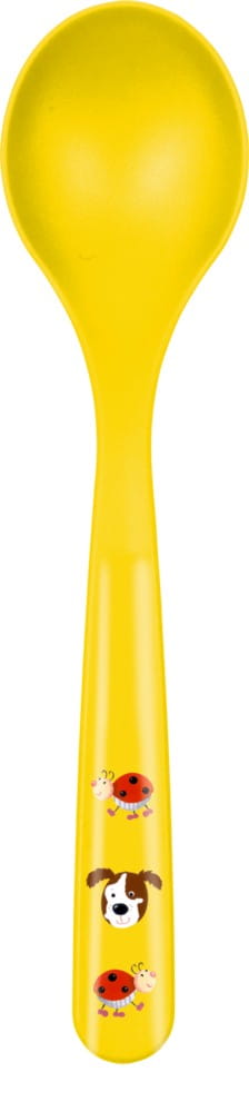 Kolorowa łyżeczka jest idealna dla dzieci. Ma zaokrąglony kształt, odpowiednią głębokość i wyprofilowanie. Wykonana z nietłukącego plastiku, wyprodukowany w Niemczech, wytrzymała na upadki i uderzenia. Łyżeczkę można myć w zmywarce i używać w kuchence mikrofalowej. Kolorowa grafika przyciąga uwagę, a piesek zachęca do próbowania nowych smaków oraz samodzielnego jedzenia.