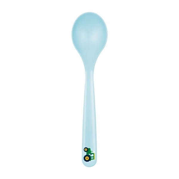 Łyżeczka zielonym traktorem jest idealna dla dzieci. Ma zaokrąglony kształt, odpowiednią głębokość i wyprofilowanie. Wykonana z nietłukącego plastiku, wyprodukowany w Niemczech, wytrzymała na upadki i uderzenia. Łyżeczkę można myć w zmywarce i używać w kuchence mikrofalowej. Kolorowa grafika przyciąga uwagę, a traktor zachęca do próbowania nowych smaków oraz samodzielnego jedzenia.