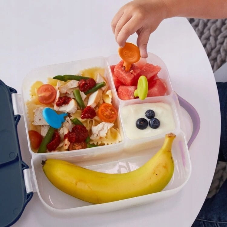 Widelczyki b.box pasują w sam raz do pojemnika na drugie śniadanie ale także na piknik, czy przyjęcie. Gdy na przekąskę mamy owoce, warzywa, czy miękkie placuszki, widelczyki bardzo pomogą w nadziewaniu i zjedzeniu. Tym bardziej, gdy nie ma jak umyć rączek przed jedzeniem. Kształt widelczyków został zaprojektowany tak, by ułatwić chwyt i posługiwanie się. Unikalne zęby zapewniają proste nabijanie jedzenia i są bezpieczne dla delikatnych dziąseł dziecka.