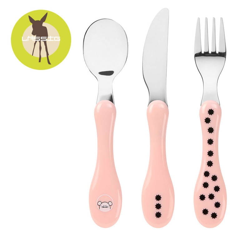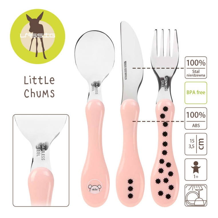 Lekkie, pierwsze sztućce Lassig to ergonomiczny zestaw sztućców dla dzieci, który zwiera widelec, nóż i łyżkę. Metalowe sztućce są idealne dla dziecięcych rączek, odpowiedni rozmiar ułatwia samodzielne nabieranie i spożywanie posiłków. Delikatnie zaokrąglone ranty i uchwyty są bezpieczne i dostosowane do umiejętności motorycznych dzieci.