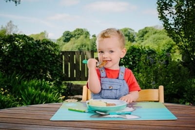 - wyprofilowane tak, by wspomóc dziecko w nauce samodzielnego jedzenia,
