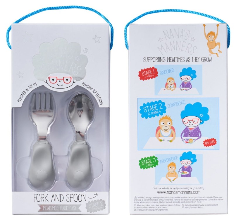 Zestaw sztućców Nana's Manners etap 2 dla dzieci w wieku 1-3 lata.