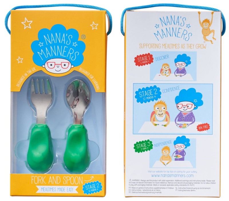 Zestaw sztućców Nana's Manners etap 2 dla dzieci w wieku 1-3 lata.