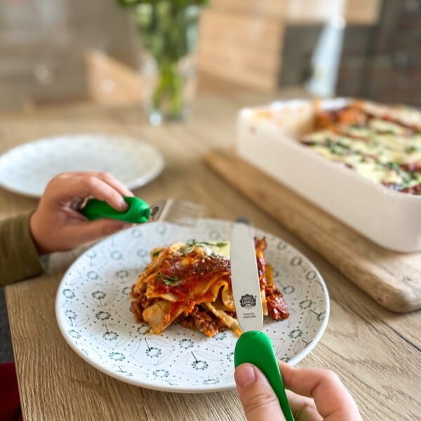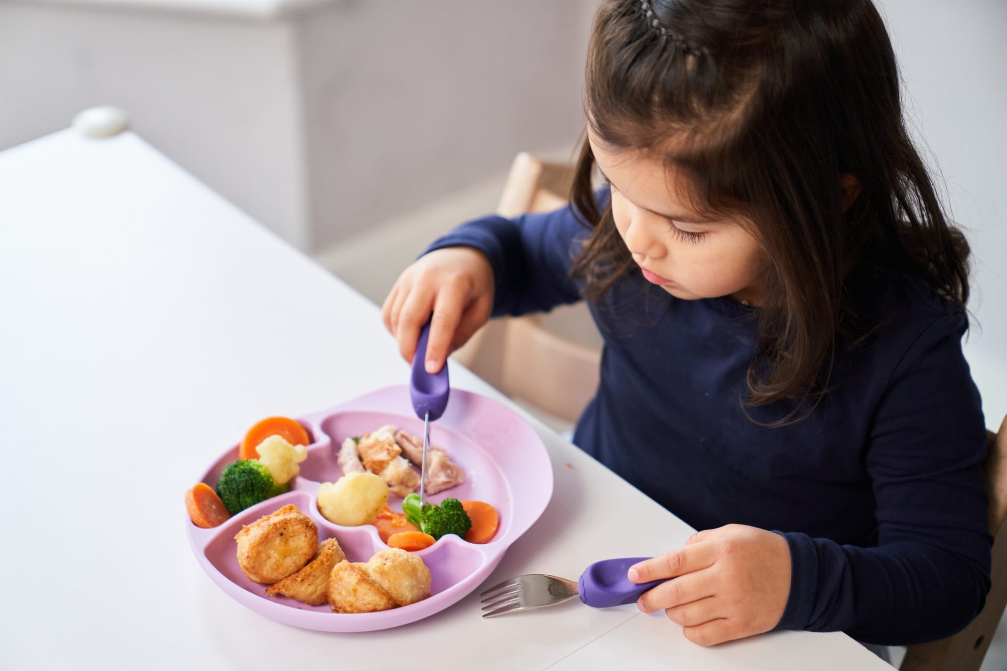 Ergonomiczne uchwyty wspierają właściwe trzymanie sztućcy, jedzenie sztućcami Nana's Manners jest dla dzieci łatwe i intuicyjne.
