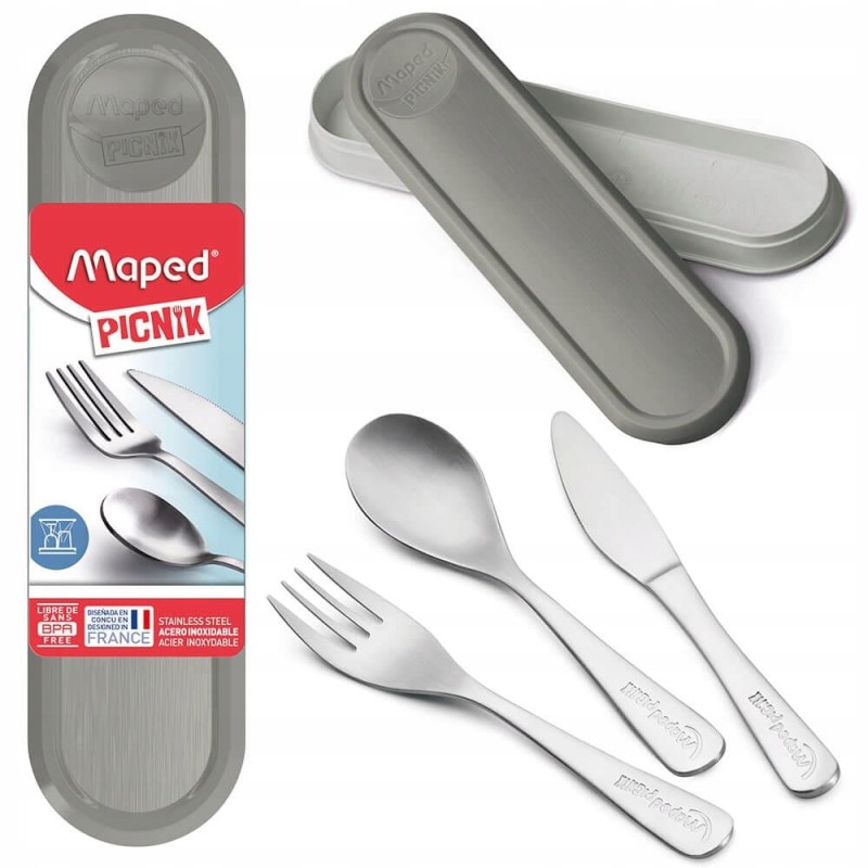 Podróżny 3-częściowy zestaw sztućców (łyżka, widelec, nóż )od Maped Picnik to doskonałe rozwiązanie dla każdego, kto zabiera ze sobą posiłek do pracy, do szkoły, na pieszą wędrówkę lub piknik.