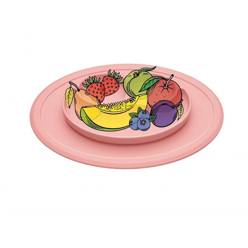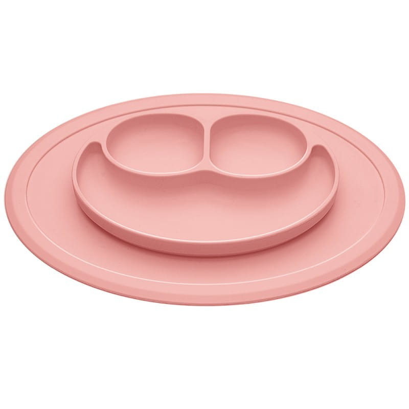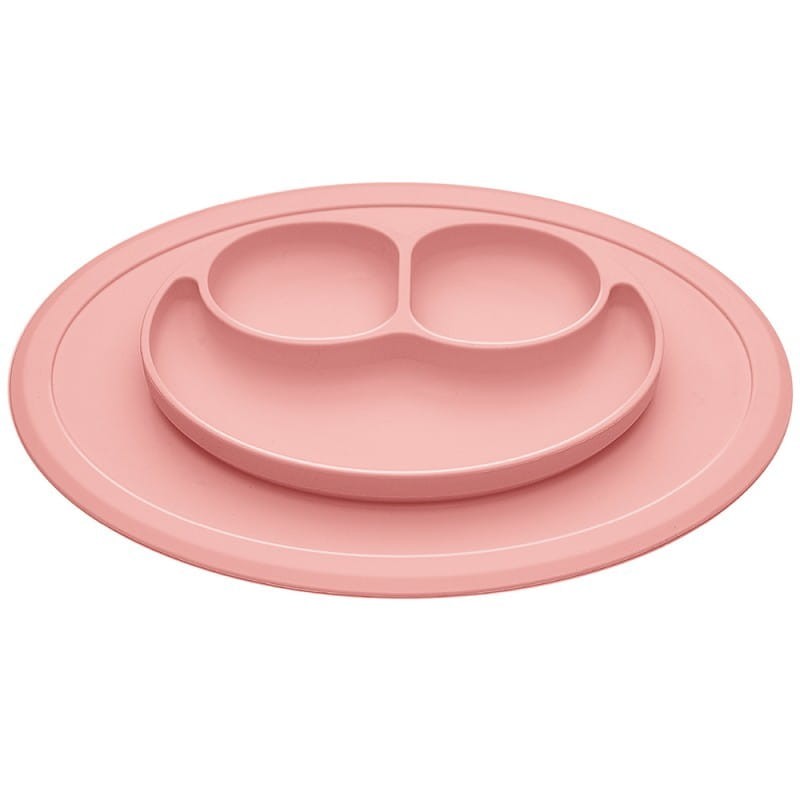 Silikonowy talerzyk z podkładką Uśmiech różowy - Bi-bi