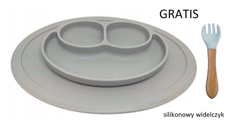 Silikonowy talerzyk z podkładką Uśmiech szary - Bi-bi