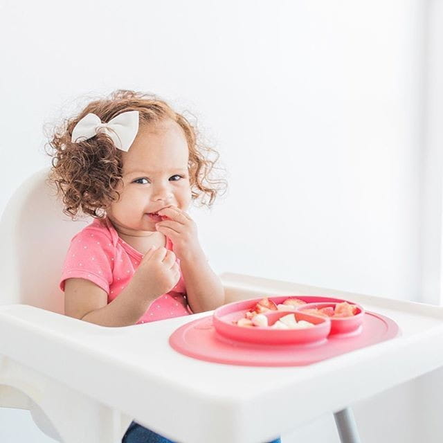 Mata do posiłków Mini Mat marki EZPZ to podkładka i trójdzielny głęboki talerzyk, który rozmiarem pasuję do większości krzesełek do karmienia. Zaserwujemy na raz zdrowe, wartościowe, różnorodne posiłki. Przedziałki pozwolą nie łączyć pokarmów i konsystencji, czego małe dzieci często się domagają. Dzieci mogą dokonać wyboru co chciałby zjeść samodzielnie paluszkami próbować, doświadczać smaków i kolorów. Talerz przyssie się do blatu stolika, trudno będzie dziecku ją zrzucić na ziemię, a szerokie ranty maty osłonią przed bałaganem.