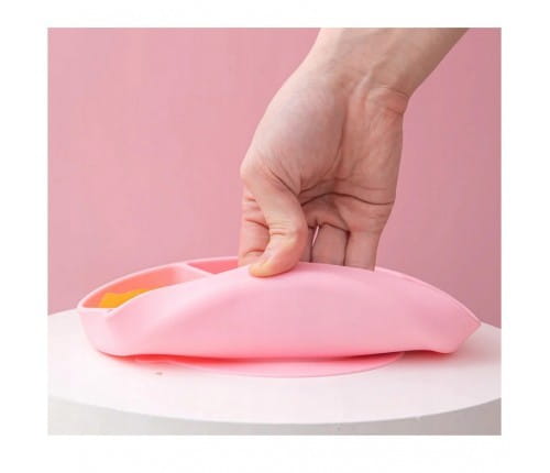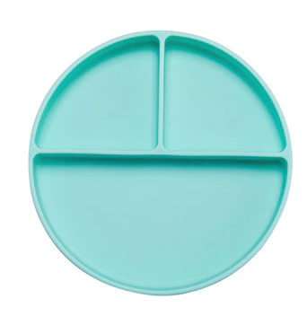 Trójdzielny talerzyki wykonany z bezpiecznego silikonu. Talerzyk wprost idealny przy rozszerzaniu diety dziecka i karmienia metodą blw. Przegródki w talerzyku umożliwiają podanie dziecku w jednym posiłku różnorodnych, wartościowych pokarmów. Przedziałki pozwolą nie łączyć pokarmów i konsystencji, czego małe dzieci często się domagają. Dzieci mogą dokonać wyboru co chciałby zjeść, samodzielnie paluszkami próbować, doświadczać smaków i kolorów. Talerz dziecięcy ma zintegrowane dno z przyssawką, zassie się do blatu stolika, trudno będzie dziecku go zrzucić na ziemię podczas jedzenia.