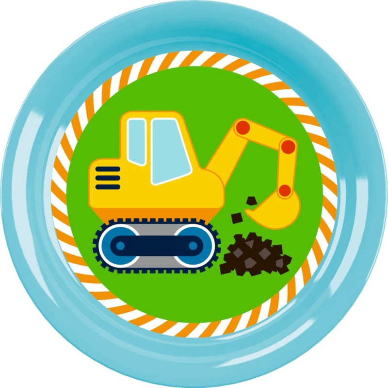 Lekki, kolorowy talerzyk z koparką wykonany z tworzywa. Talerzyk dziecięcy idealnie sprawdzi się do podawania porcji jedzenia dla dzieci, śniadania, obiadu, podwieczorku, owoców, czy domowego ciasta. Talerzyk dziecięcy wyprodukowany w Niemczech z nietłukącego plastiku.