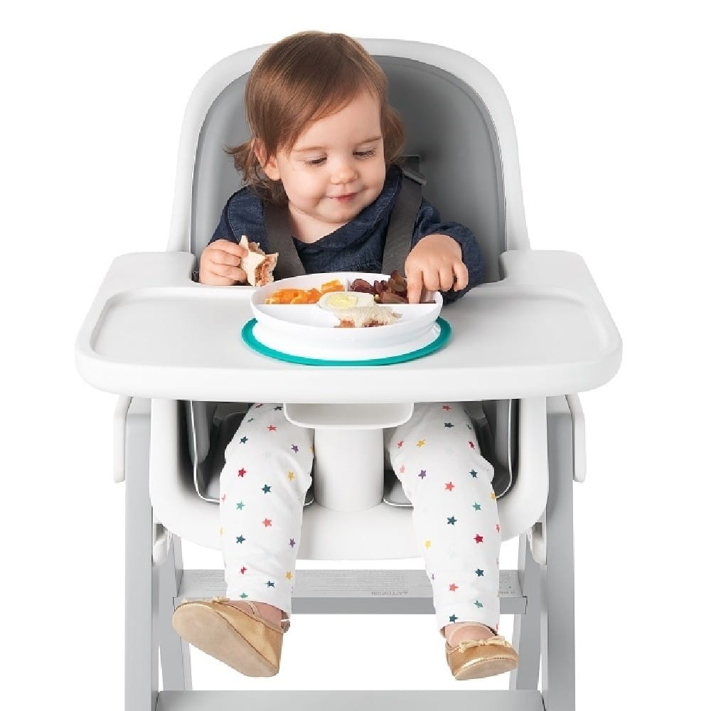 Talerzyk z przyssawka OXO to idealny model na początek rozszerzania diety dziecka i posłuży na długo. Talerzyk dla dziecka ma przegródki, które umożliwiają rozdzielenie posiłku pomiędzy 4 sekcie, podanie dań o różnych konsystencjach. Bezpieczna podstawka stabilnie trzyma talerz na blacie krzesełka lub stole, bez obaw o oderwanie go przez dziecko i zrzucenie na podłogę. Talerz z podwyższonymi rantami ułatwia dzieciom samodzielne jedzenie, które mniej wypada z talerza przy próbach nagarnięcia na łyżkę lub widelec.
