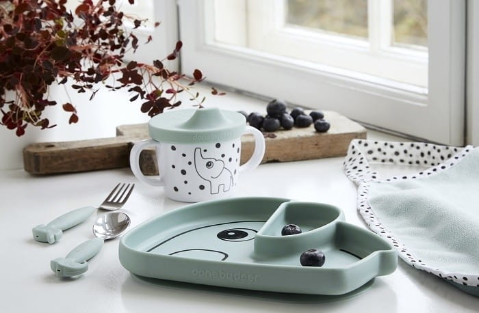 Dwudzielny talerzyk Done by Deer w kształcie słonika, wykonany z bezpiecznego silikonu. Talerzyk z dwoma komorami jest wprost idealny przy rozszerzaniu diety dziecka i karmienia metodą blw. Posiada dużą przyssawkę, która stabilnie trzyma go na blacie. Przegródki w talerzyku umożliwiają podanie dziecku w jednym posiłku różnorodnych, wartościowych pokarmów z podziałem na porcje. Przedziałki pozwolą nie łączyć pokarmów i konsystencji, czego małe dzieci często nie lubią. Dzieci mogą dokonać wyboru co chciałby zjeść, samodzielnie paluszkami próbować, doświadczać smaków i kolorów. Talerz dziecięcy ma zintegrowane dno z przyssawką, zassie się do blatu stolika, trudno będzie dziecku go zrzucić na ziemię podczas jedzenia.