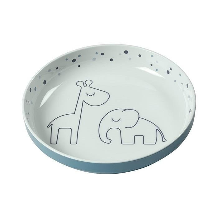 Dziecięcy talerzyk z melaminy Done by Deer z wyższym rantem. Odpowiednia pojemność, zaokrąglone kształty i wyprofilowanie sprawią, że dzieci z przyjemnością zjadają podane dania obiadowe, przekąski, czy warzywa i owoce. Najmłodsi mogą cieszyć się odkrywaniem sympatycznych zwierzaków na dnie tego uroczego talerzyka. Wyższy rant z pewnością ułatwi samodzielne nakładanie pokarmów na sztućce.