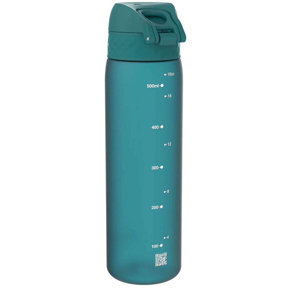 W 100% szczelna butelka na wodę ION8 o pojemności do 600 ml (miarka wskazuje poziom do 500 ml). Posiada okrągły otwór – zapewnia prawidłowe nawodnienie, wygodne uzupełnianie płynów (dodanie kostek lodu, czy owoców), łatwe czyszczenie. Sprężyny lekko otwierają klapkę po naciśnięciu spustu blokady palcem. Zamknięcie bidonu otworzysz jedną ręką (pomocne podczas treningu, jazdy rowerem, samochodem, w autobusie).