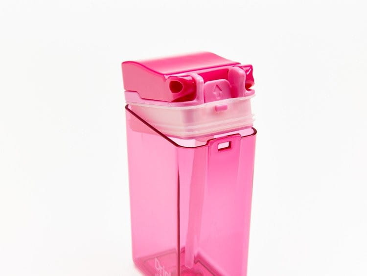 Nowy, ulepszony bidon ze słomką Drink in the Box wykonany z ulepszonego, amerykańskiego materiału Tritan, bez cienia szkodliwych substancji, ma zwiększoną odporność na zgniecenia, zarysowania, nie przecieka. Unikatowy, prostokątny bidon z łatwością mieści się w dziecięcym plecaku, lunchboxie, kieszeni od kurtki, czy uchwycie na napój w samochodzie. Zabierz bidon na spacer, w podróż, do szkoły i na zajęcia sportowe.
