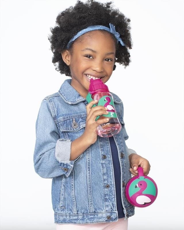 Bidon ze słomką Skip Hop Zoo Straw Bottle Flaming, idealna butelka dla dziecka do picia wody lub nawadniających napojów. Ulubiony na całym świecie dziecięcy bidon, praktyczny, poręczny, wesoły i zachęcający do picia. Niezastąpiony na spacerze, w przedszkolu i szkole, klubiku, na wycieczce, czy w domu. Butelka, która jest zawsze pod ręką, szybko zaspokoi pragnienie. Nie kapie i nie przecieka, może być trzymany do góry nogami bez obaw o rozlanie, polecany bidon już dla rocznych dzieci. Łatwe otwieranie poprzez przesunięcie daszka umożliwia dzieciom samodzielną obsługę, a zamknięcie chowa też słomkę pod wieczko. Opływowy kształt dobrze trzyma się w dziecięcych rączkach, a praktyczna mini smycz za rzep ułatwia chwytanie, przenoszenie butelki oraz zaczepienie do wózka, torebki, czy plecaka.